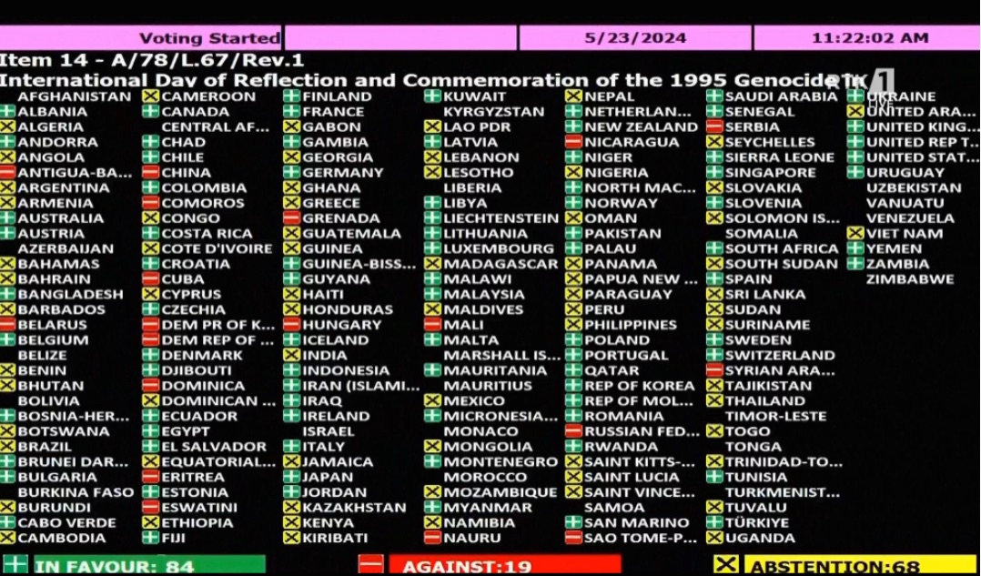Me 84 vota “pro” është miratuar Rezoluta për Përkujtimin e Viktimave të Gjenocidit në Srebrenicë.