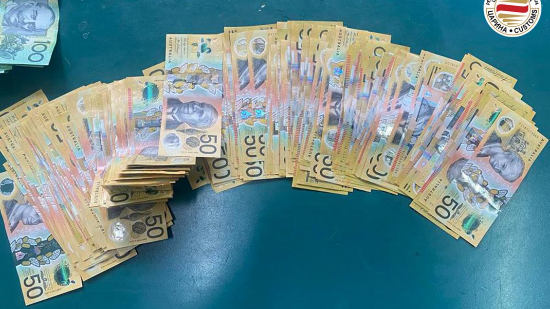 Drejtoria e Doganave në RMV njofton se janë sekuestruar 15.050 dollarë australianë, pasi një shtetas i Maqedonisë i ka raportuar doganierëve vetëm dy mijë dollarë në vendkalimin kufitar Qafë Thanë, edhe pse me vete ka pasur një sasi më të madhe të devizave.