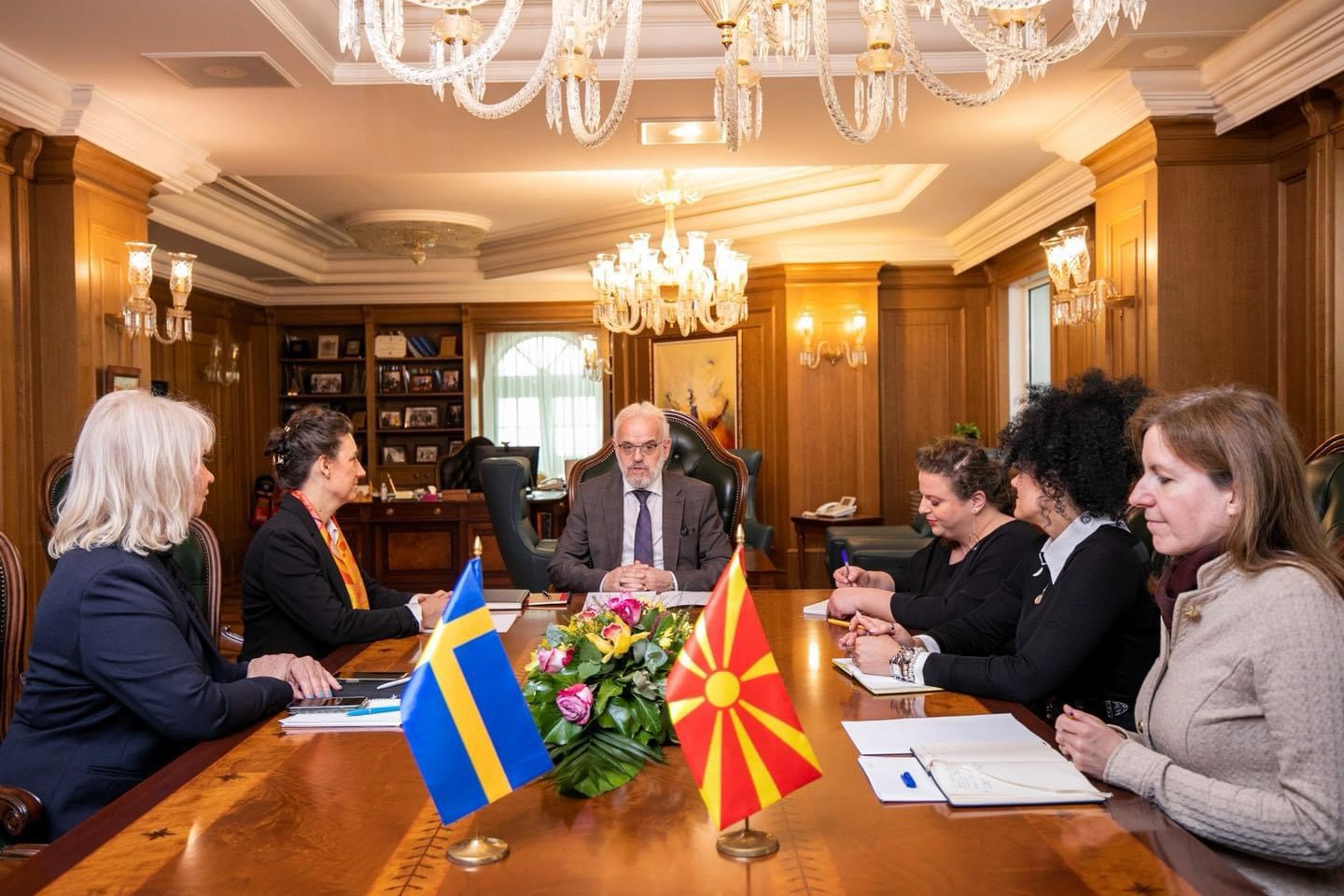 На средбата со амбасадорката на Кралството Шведска, Ами Ларсон Џеин упатив честитки за членството на Шведска во НАТО и до мојот колега Кристерсон и до сите граѓани на Шведска. Како сојузници ќе продолжиме да работиме кон зацврстување и проширување на нашето заедничко евроатлантско семејство, бидејќи заедно сме посилни.